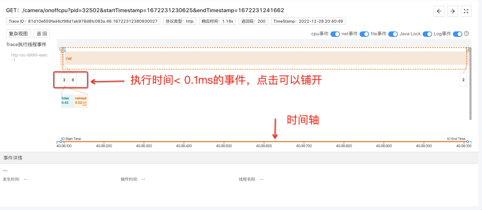 根据Container name + pid,找到你需要检测的请求url,然后选择某次Profile记录之后,系统主页面会展示该次trace基本信息以及所有工作线程分析。
